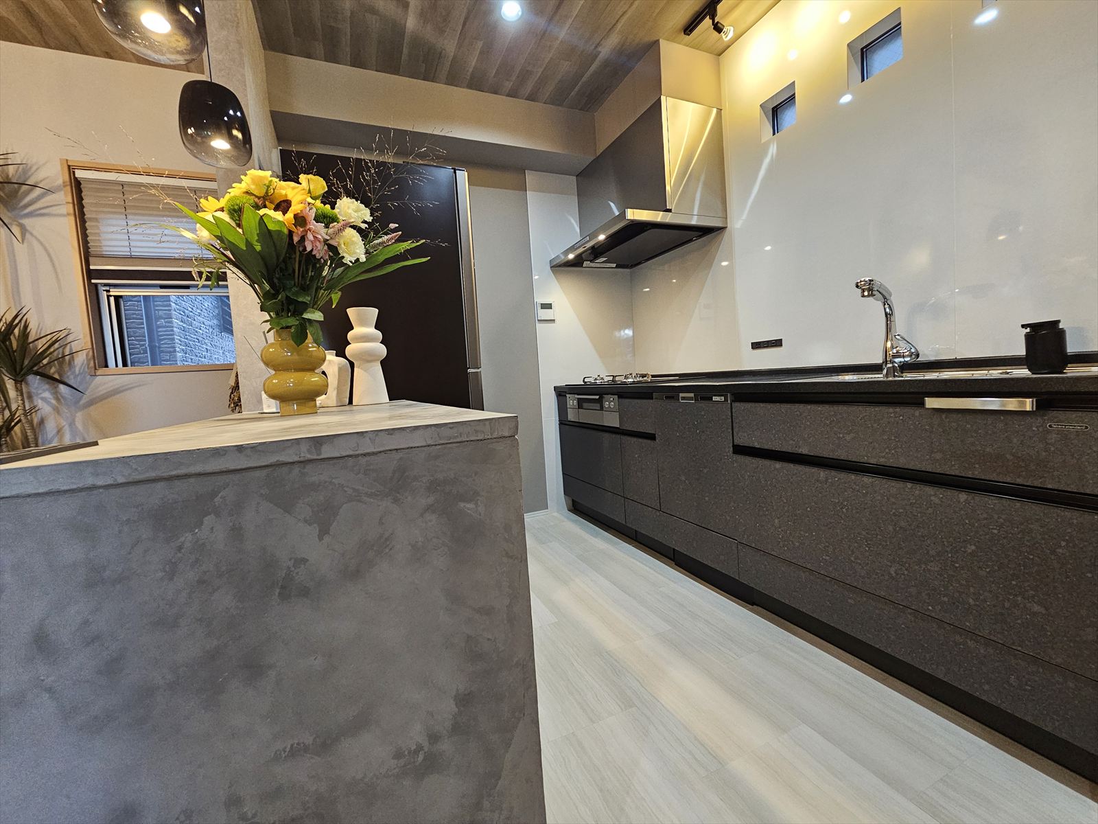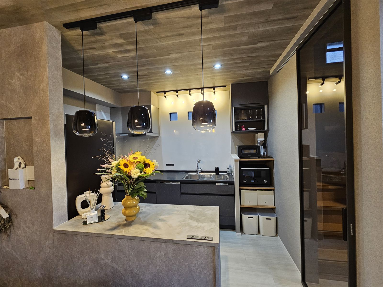 もう別次元の世界へ(^^♪ キッチンは小型のL型をI型と造作カウンターで使いやすくしました(^_-)-☆